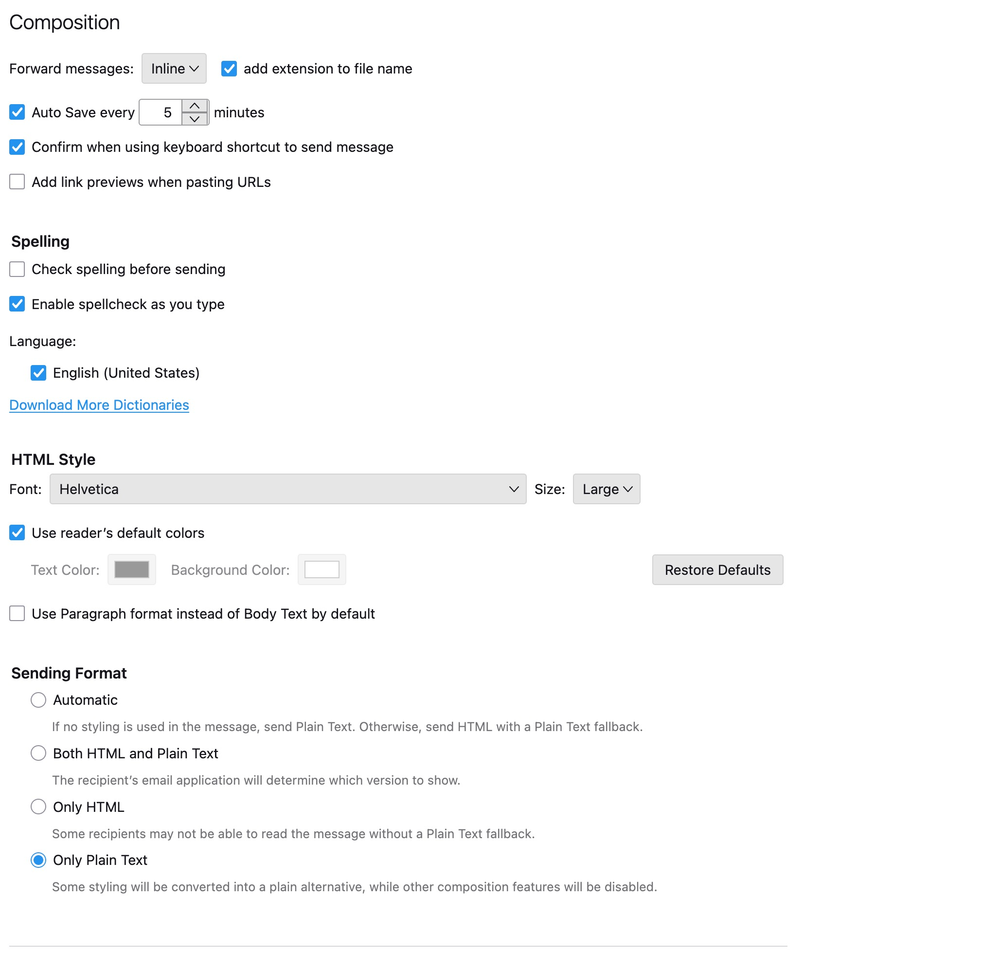 How do I configure Thunderbird to send in the format that other people have for incoming mail on their side, and yet I can see what I want to see if looking at their messages, or if test and send to my self? Is that even possible?