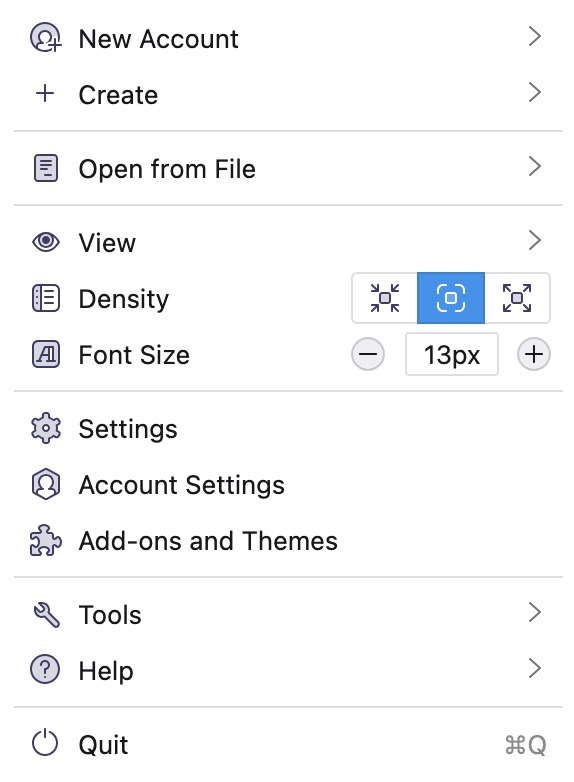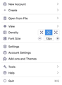 Then, when you click the hamburger icon at the top-right in Thunderbird, should that font display size match what you have selected in Gear > General > (numbers for font sizes).