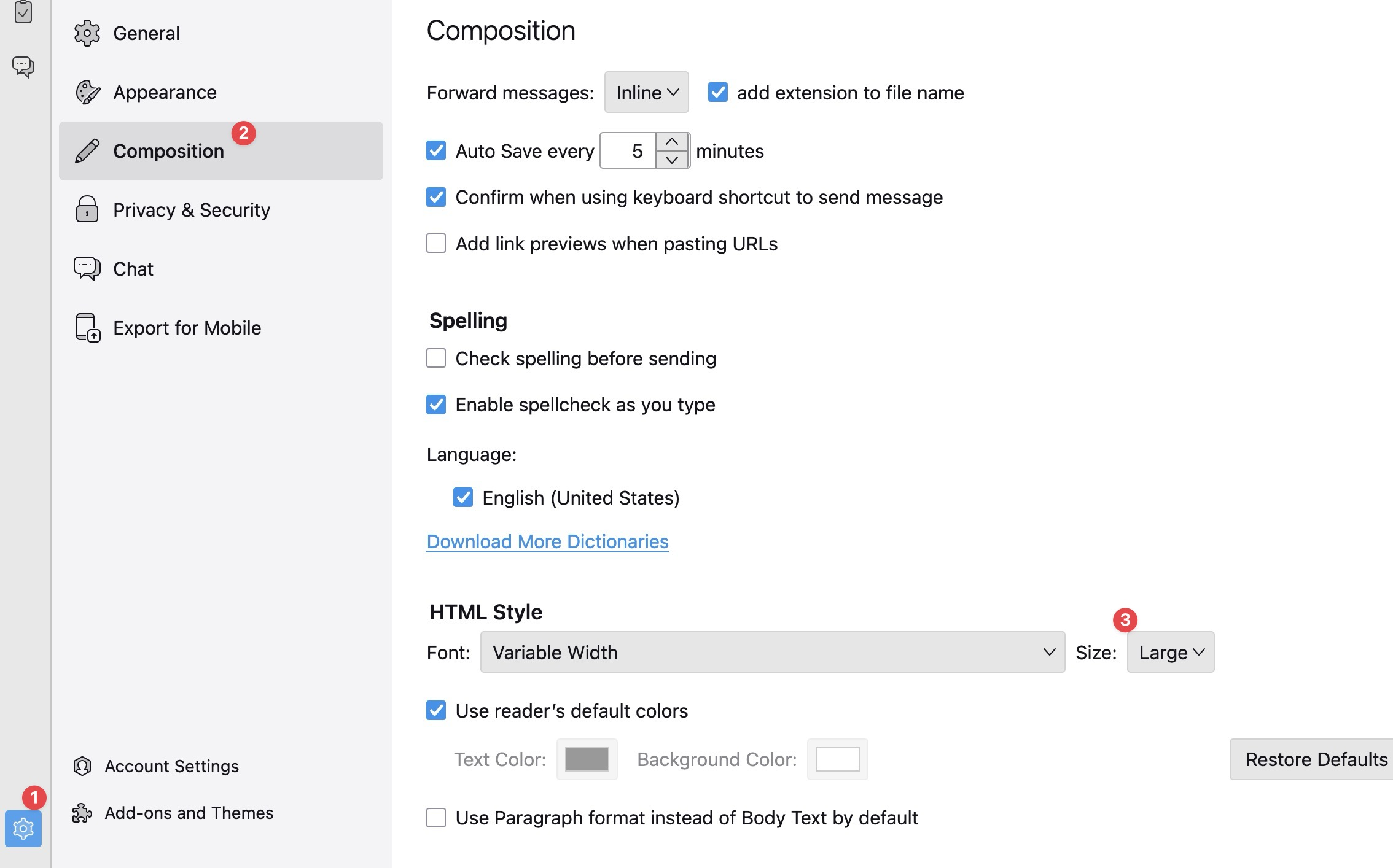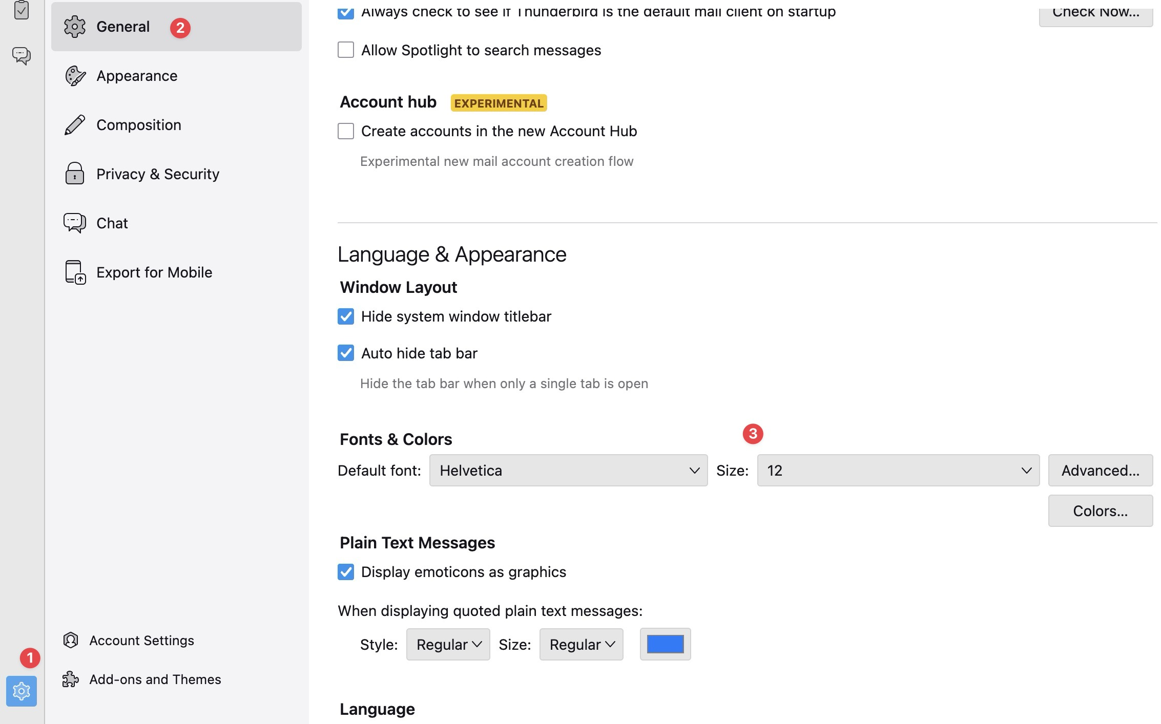 When I first set Thunderbird up, the interface is far more raw than Outlook which I came from. I was trying to get a nice looking signature that resembled Calibri with the font size I was used to reading. In Outlook, fonts from gmail online came in larger or smaller depending on the person sending.