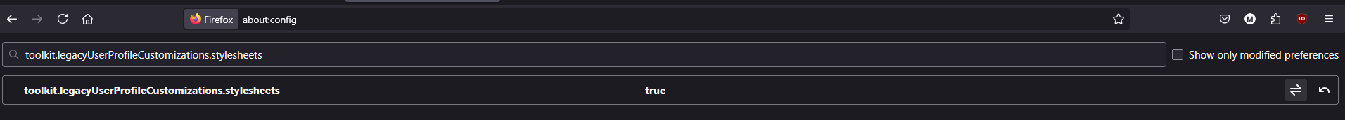 toolkit.legacyUserProfileCustomizations.stylesheets set to true