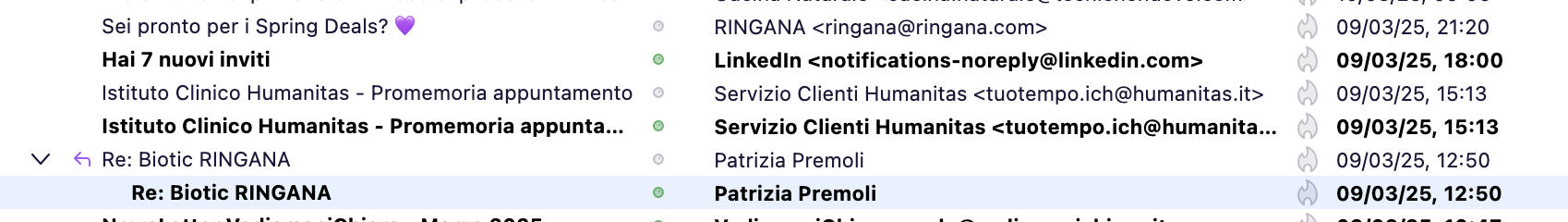 1. Versione di Thunderbirds 128.12 0esr (64 bit) 2. Versione del sistema operativo MacOS Monterey 3- Providere delle caselle email Aruba 4. Tipologia di account POP3 5. Estensioni installate credo nulla 6. Nessun messaggio di errore, continua solamente a scaricare mail già scaricate 7. Nessun software di sicurezza