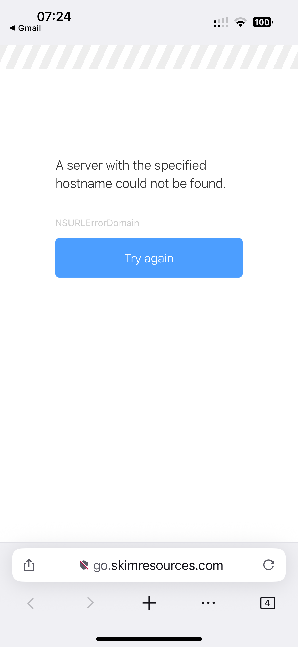 Firefox won’t load any links from Gmail or articles. When I hit a link, it opens a page with the URL ‘ https://go.skimresources.com/‘ and says ‘a server with the specified hostname could not be found’. This has happened with multiple links from multiple pages. My WiFi is fine and it’s also happened on data and I don’t see any available app updates. I’ve also tried deleting and reinstalling it.