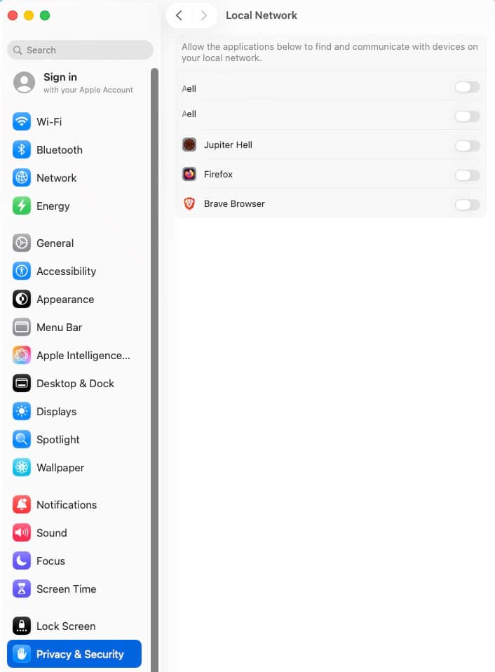 Mac Firefox and ALL browsers - this is not your solution but a solution for "This site can’t be reached" or "Unable to connect". Go to System Settings>Privacy & Security>Local Network - toggle app on to Allow. If you Startpage or DDG "This site can’t be reached" or "Unable to connect" you will find nothing but drastic procedures from turning off all firewalls to reinstalling browser and OS when it's a simple toggle solution. When you update MAC OS these toggles are turned off nearly every time and one can forget what the real solution is. I've been on Apple senior tech support, several diff agents, going through drastic procedures when it's always been this toggle issue (It can happen every 1,2,3 years and I forget the toggle solution so I decided to write it down here so when it happens again like today when I updated to Tahoe, it happened, I searched internet and couldn't find the real cause/solution. Firefox actually gives the solution in their last line of text.