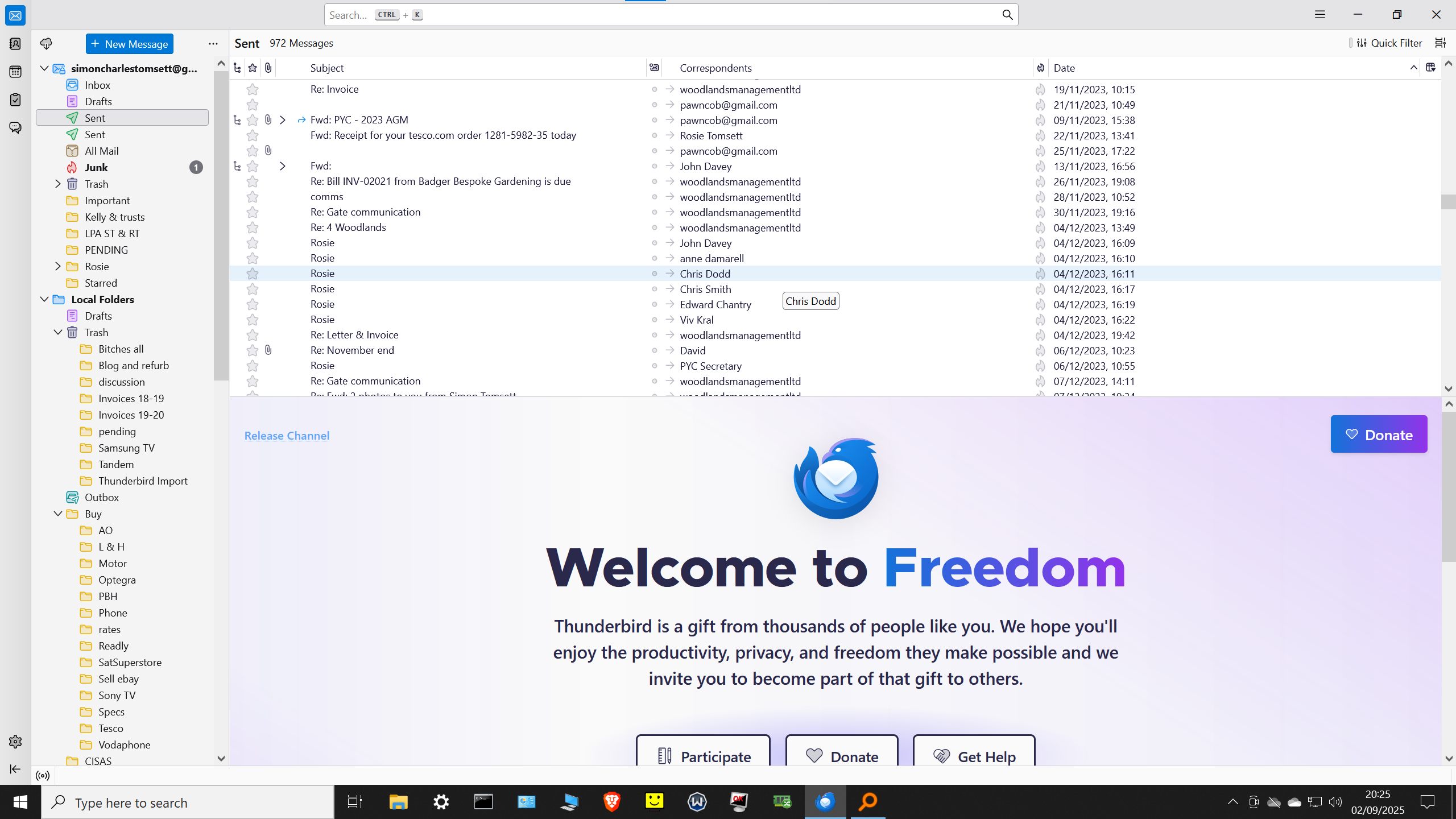 My T'bird email account now shows two "Sent" folders. One with 972 messages and one with 995. Assuming the larger one is correct, how do I remove the other one? (both take up c260mbytes).