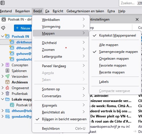 2 zaken zijn aangevinkt, 'koptekst mappenpaneel' en 'samengevoegde mappen' owv de meerdere emailaccounts die ik gebruik. Zie ook bijgevoegde foto.