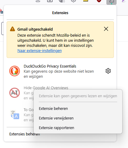 Dank voor de reactie. Het gaat om de extensie Hide Google AI Overviews.