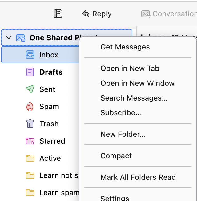 If you set up an IMAP account, you should see something like what is in my screen image. And you should see that drop-down menu when you right click on the account name (whatever is in the top row). Do you?