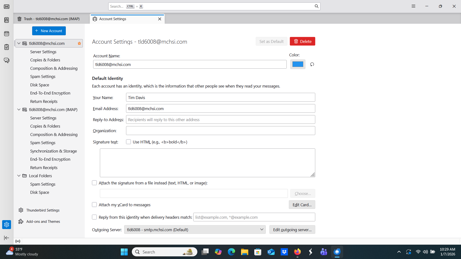 I did all the steps to convert to IMAP and now I can't connect to the Mediacom Server. Nothing makes any sense, when I open Thunderbird now it shows I have a POP account