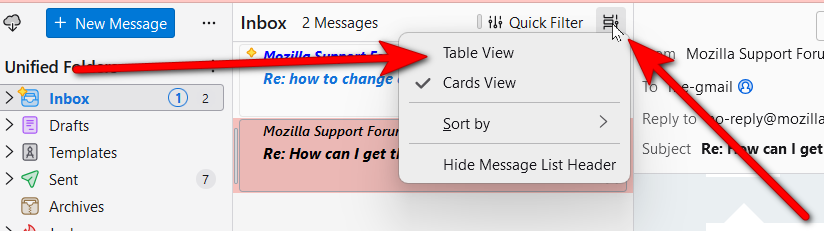 How can I get the old email listing where I click on a column to sort that column like Sender?