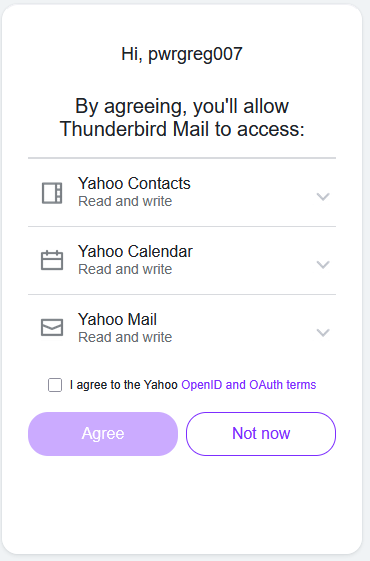 To install a Windows 10 update (I'm on extended support) I told it to update & shutdown. I fired it up this morning and Thunderbird is asking for credentials. It usually just runs & downloads emails. I enter my password, then a code from authenticator app. It shows the page below in an embedded browser window that has a checkbox and an "Agree" button. I check the box but the Agree button is still disabled. Dead end. I cannot connect & I'm stuck.