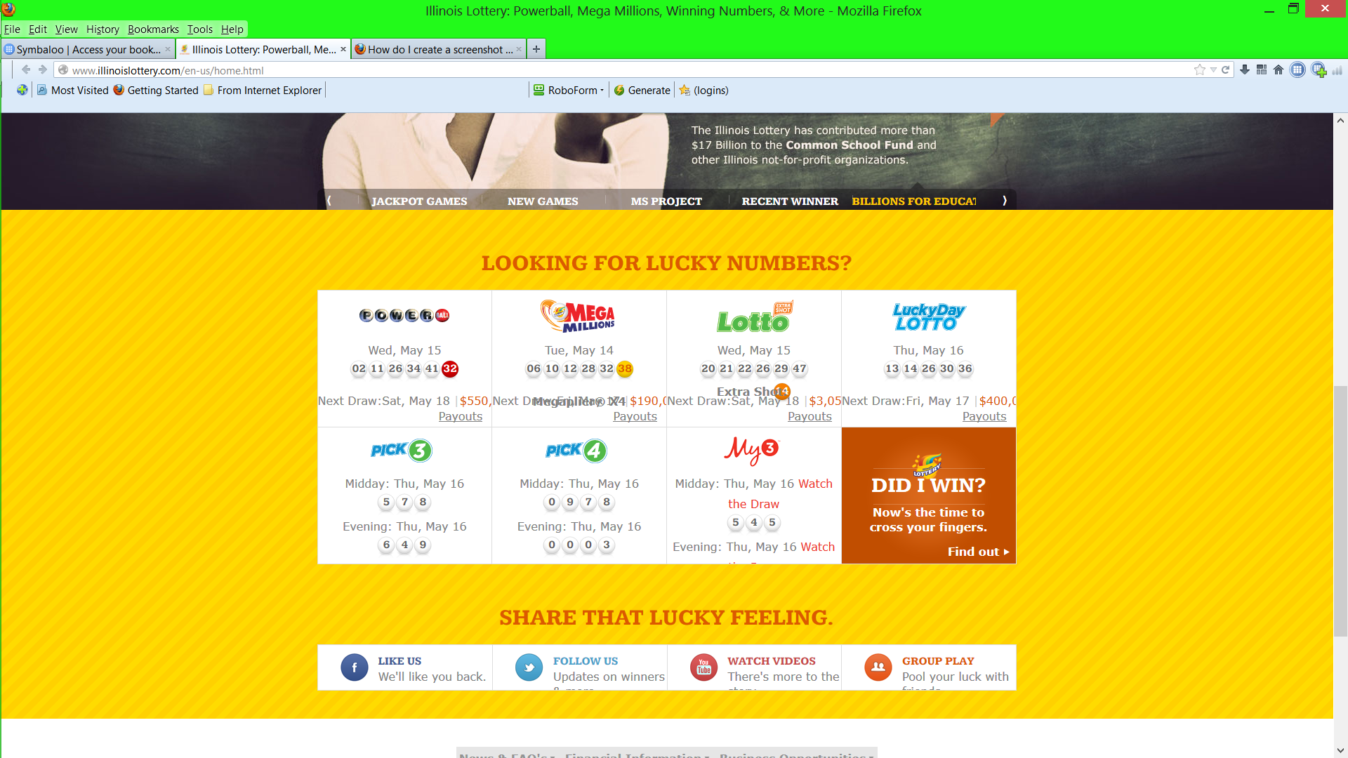 When I go to a web site (not all but some) ie http://www.illinoislottery.com/en-us/home.html