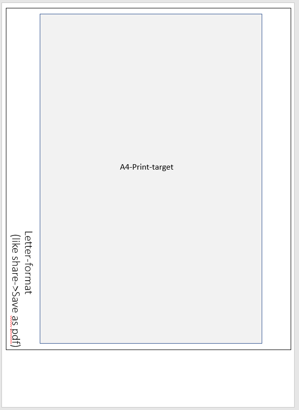As i tried it on Firefox for android, it seems like the page is first converted in an letter-format pdf, which is then printed on A4, which messes up the document. (Additional margins at the sides and bottom.) The Share->Save as PDF-Document looks just like the wrapping letter-page.