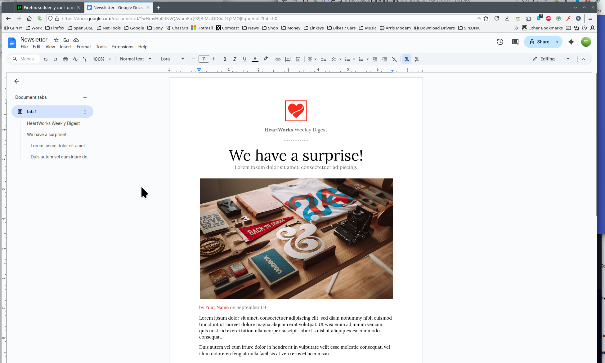 Hard to help with something we cannot see... Provide steps to replicate the issue and post screenshot showing what you see in Firefox and other browsers. Try with a sample document that we can also access. Let me go open a Google doc for S&Gs... Did you try with Firefox in Troubleshoot Mode? https://support.mozilla.org/en-US/kb/diagnose-firefox-issues-using-troubleshoot-mode#search Did you clear your browser cache? https://support.mozilla.org/en-US/kb/clear-cookies-and-site-data-firefox What OS? If windows, what security software besides MS Defender are you running? What version of Firefox?