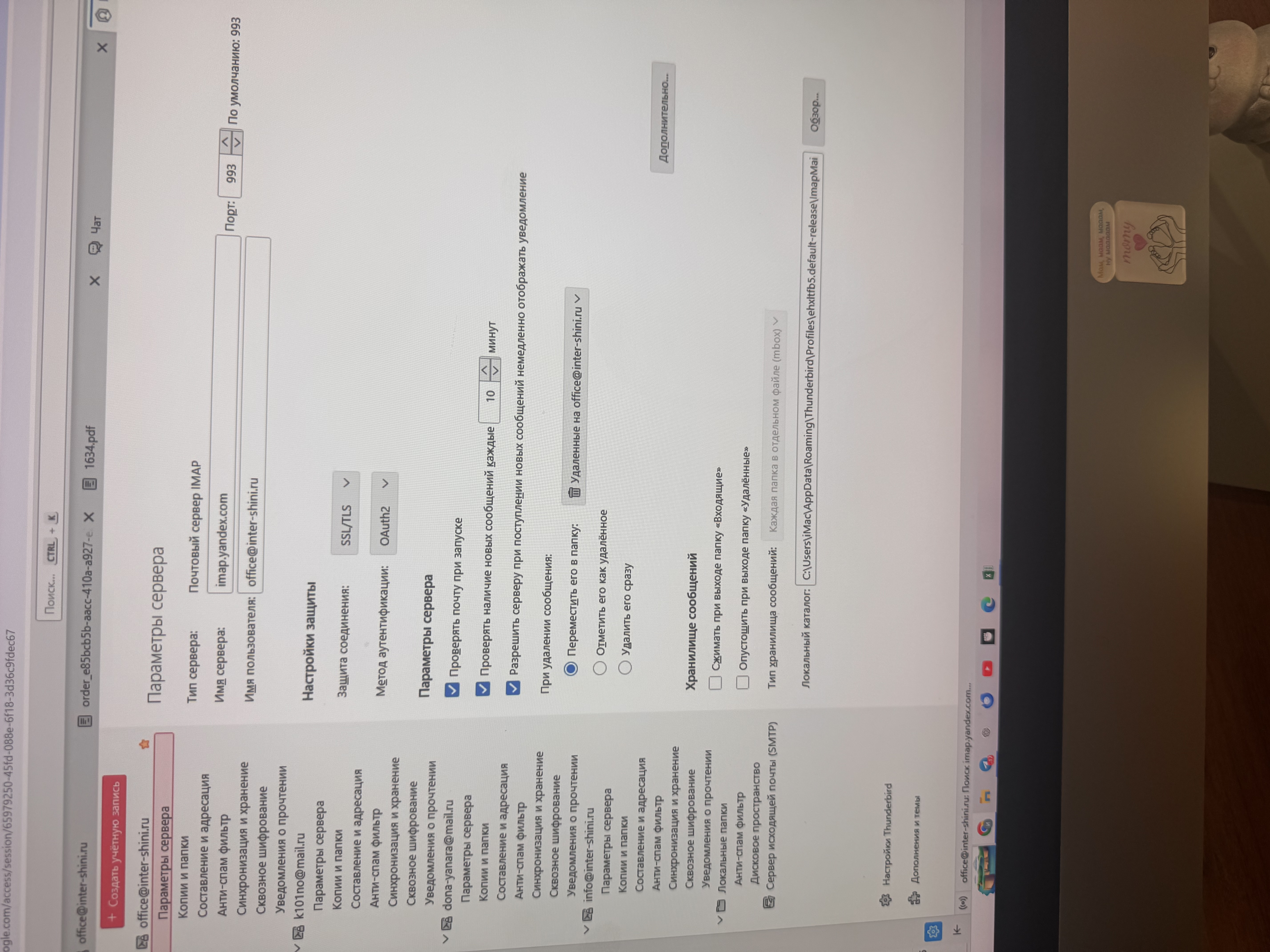 We are using Mozilla Thunderbird on a Windows-based computer to manage our corporate email hosted on the Yandex domain.