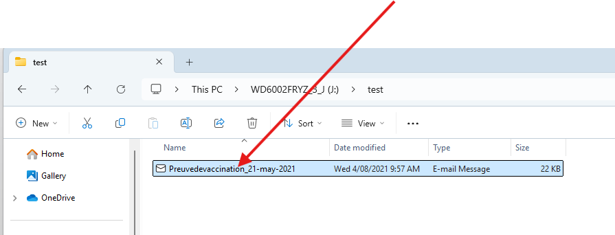 3) Open Windows Explorer and go to the directory where your eml file is located ( please see picture )