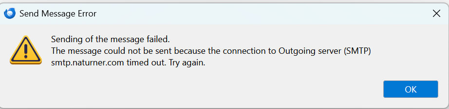 I use Mozilla Thunderbird as my e-mail client for an atlantic.net server and I have trouble the past few days both sending and receiving e-mails. I have no issues with the Atlantic.net web client, only my Thunderbird client. I have attached screen shots of both errors appearing after I launch Thunderbird and after I try to send an e-mail. I have also attached my server settings. I have made no changes in server settings. These issues began to appear a few days ago after running flawlessly for several years. I contacted atlentic.net and opened a ticket with them but they say it's an issue with Thunderbird.