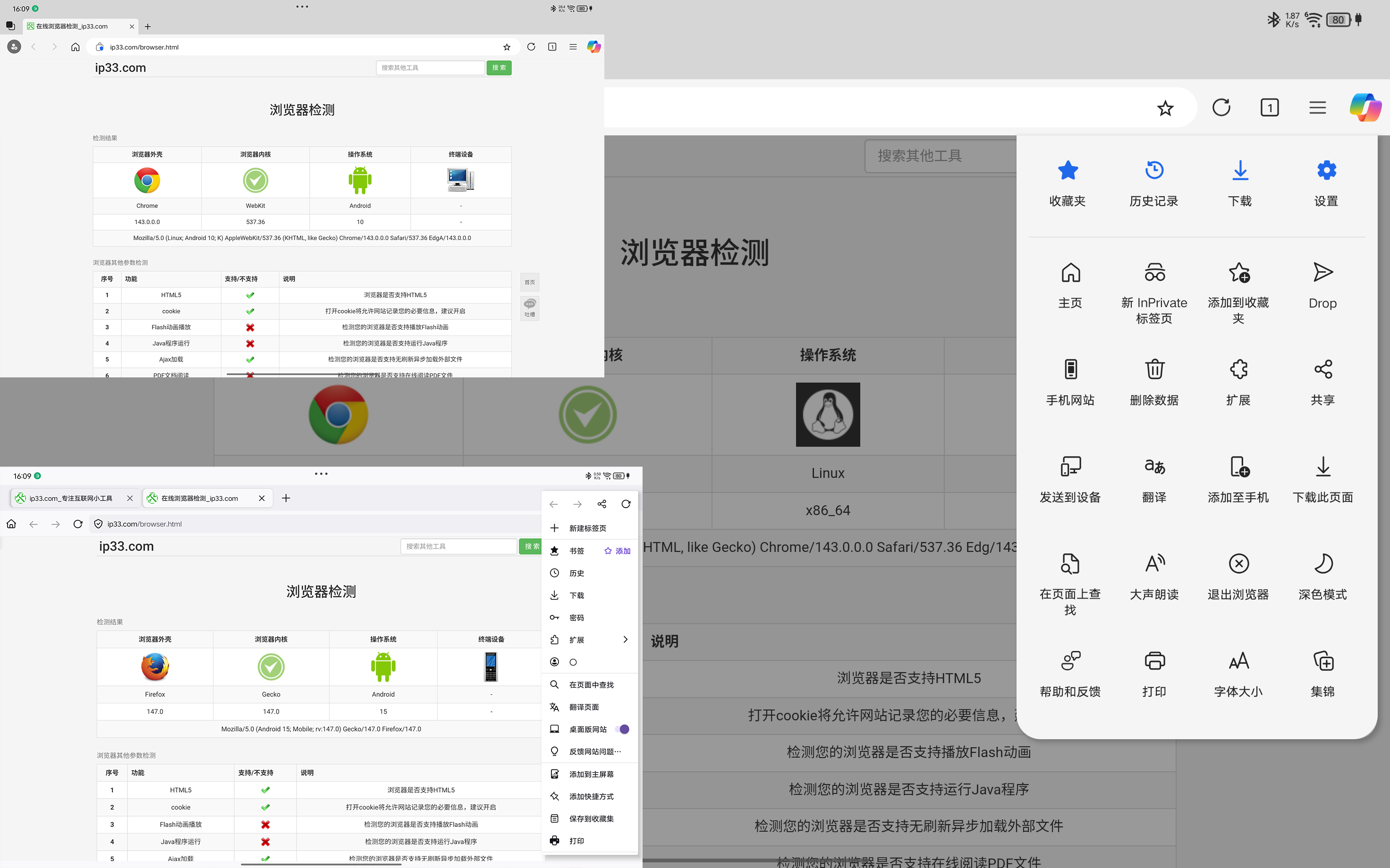 Hi developers, I'm running Firefox on an Android tablet and ran into an issue. When I enable the desktop version of the browser, accessing websites (like searching on Baidu) fails to load the desktop version. I compared Edge browser with Firefox and found through website UserAgent detection that when Edge runs desktop websites, it switches UserAgent to Linux, while Firefox maintains Android UserAgent for desktop sites. This causes some websites to ignore network requests and load mobile versions. To resolve this, we need to disable and re-enable desktop website access first, which may allow the site to respond to desktop requests.