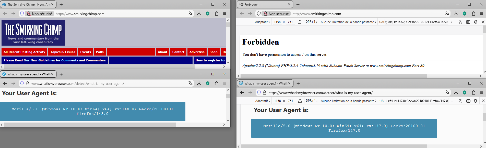 On Firefox 148 i have permission to access / on this server. On Firefox 147 i don't have permission to access / on this server.