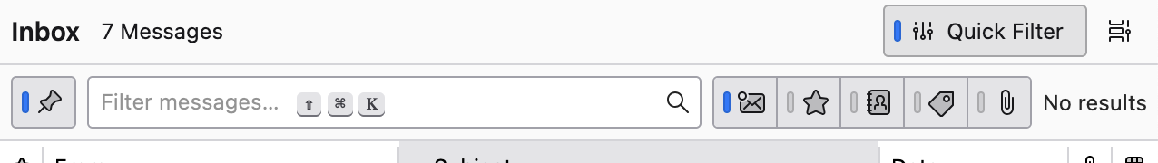 Please see my attached screen image. Do you have quick filter settings that look like mine? Do any buttons have a blue line on them?