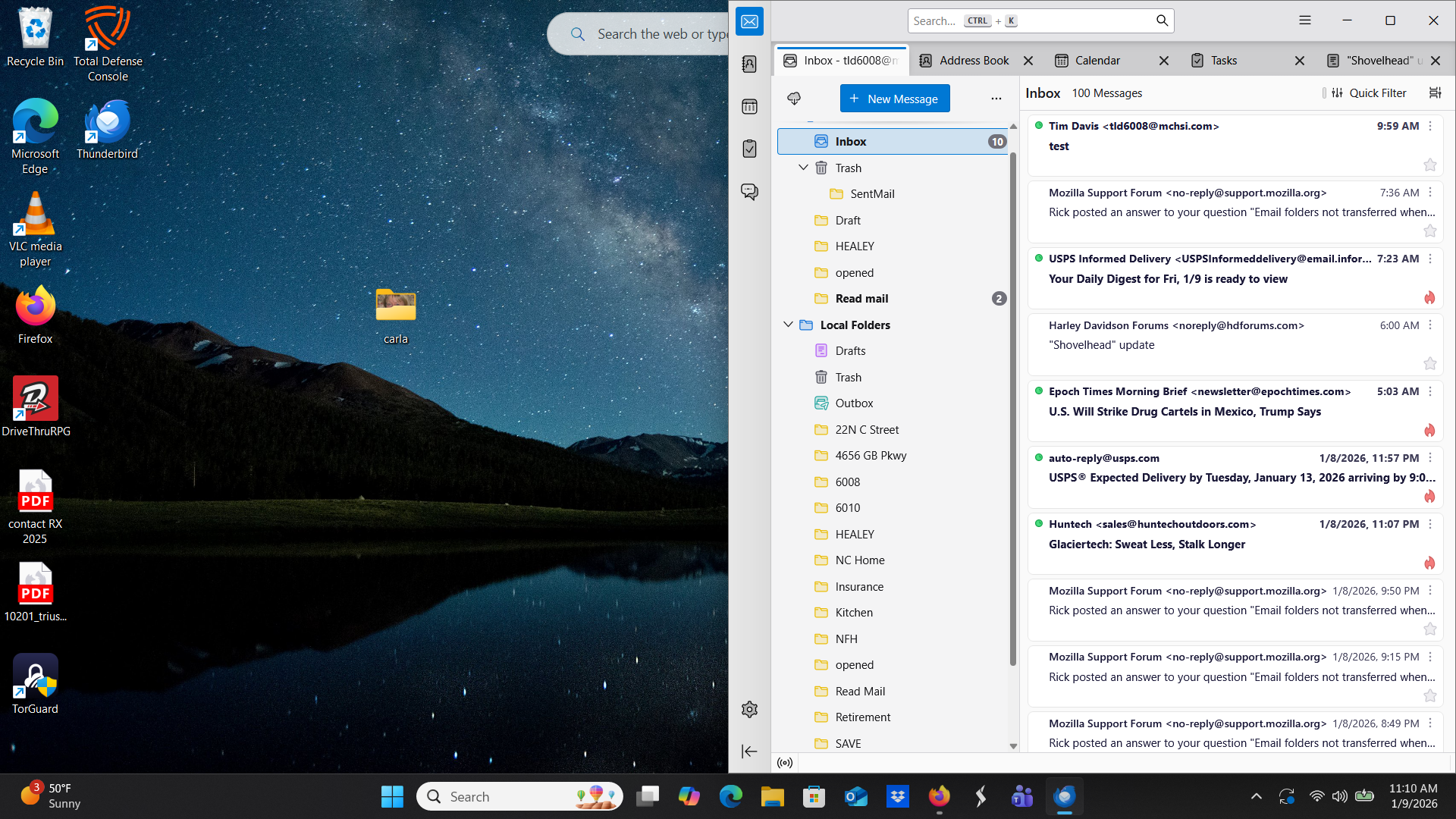 Let's make sure we understand the current situation. You can send messages from Thunderbird. You can receive messages in Thunderbird. Right? Good.