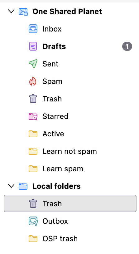 Now I notice that your SentMail folder, which should not be in the trash, also doesn't have the icon that it should have.