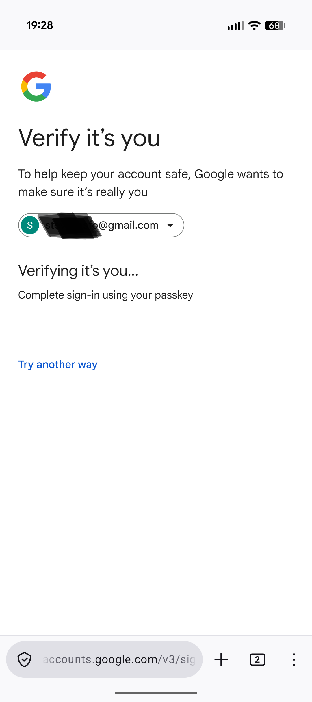 I've created a passkey for logging in to Google.