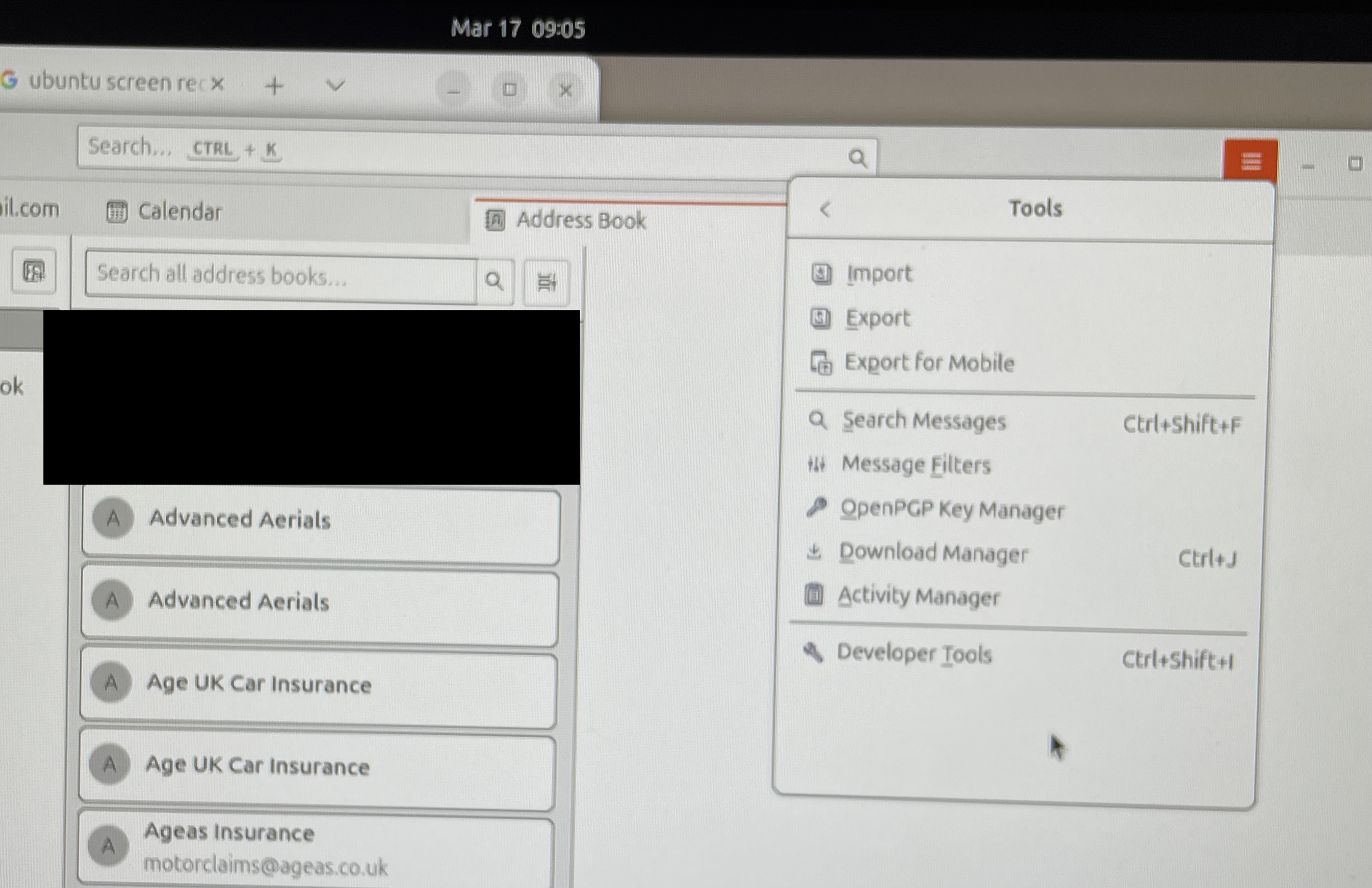 Ubuntu 24.04.4 LTS after installing, removing and re-installing the duplicateContactsManager, it does not show up in the tools menu while viewing contacts.