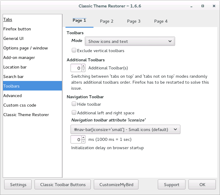 I use the Aeon Jumbo appearance add-on to see Firefox toolbar better and, if I use the Classic Theme Restorer, it puts the icons back to tiny little things which defeats the purpose.