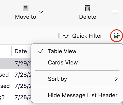 Thank you Rick. I am familiar with the "thing" shortcuts and have used some of Windows' shortcuts. Never realized that there were also some for TBird. I'll have a look. I did see tho that in the newer version of TBird, it didn't list all those 'sent' emails as it did in the previous installation on my desk top. The new one listed 1 or 2, and opened them one at a time in full read mode. Can I change that so that everything opens in a list and won't open the message unless I click on it? That would have made yesterday's correction so much easier and quicker.