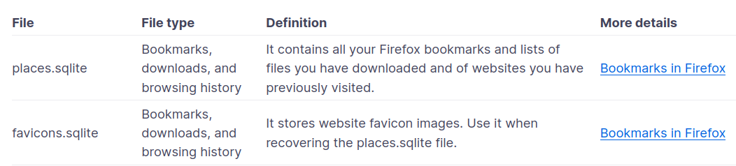 About your important data and their files https://support.mozilla.org/en-US/kb/about-your-important-data-and-their-files