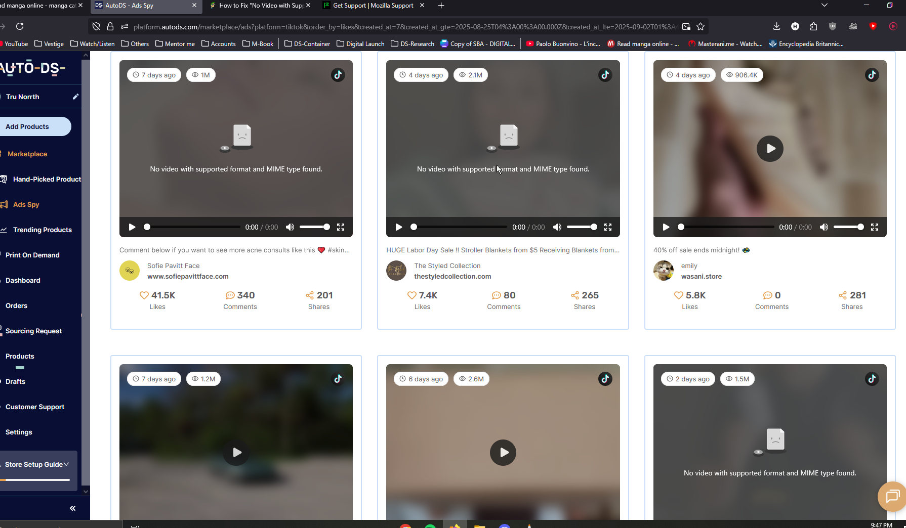 And the site I'm using is paid. https://platform.autods.com/marketplace I'm trying to use ad spy for drop-shipping