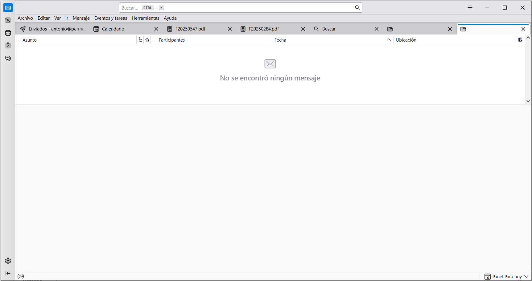 Hola por alguna razón que desconozco, algunos mensajes antiguos (de pocos meses) no muestran su contenido. Puedo encontrar el mensaje y leer su Asunto:, incluso, en los resultados de la búsqueda puedo leer parte del texto del contenido del mensaje (ver primera imagen) pero cuando pulso sobre el mensaje para entrar en el cuerpo no aparece nada, es decir Thunderbird no encuentra el mensaje (ver segunda imagen).