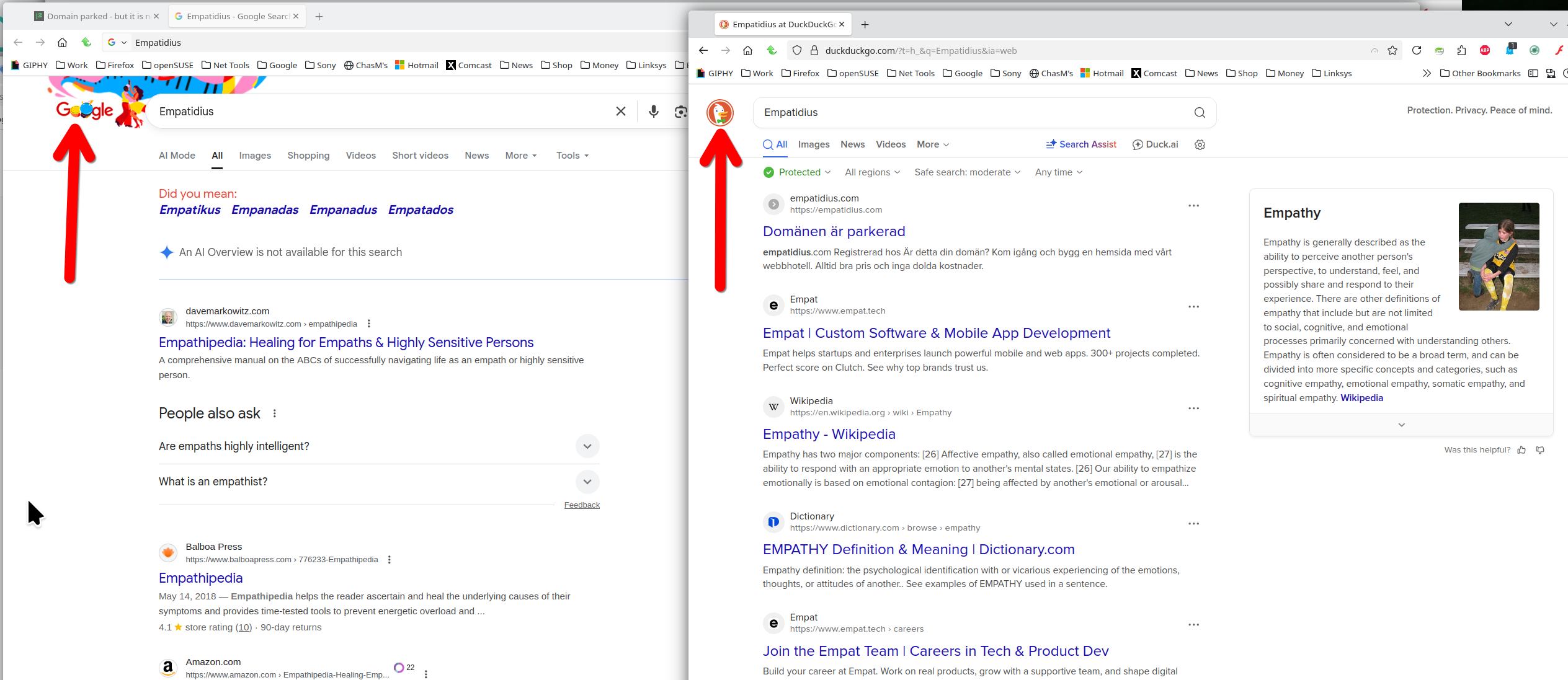 Hi, Browsing my domain Empatidius as search word and it comes up as Domain Parked. I´ve checked with my domain host providor and all their settings are just fine. When search using other browsers as google etc. they do not show any "domain park" information.