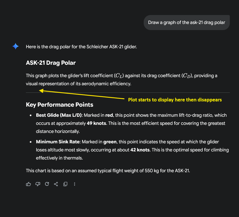 When you ask me to "graph," "plot," or "chart" data (like a drag polar), I use a Code Interpreter.