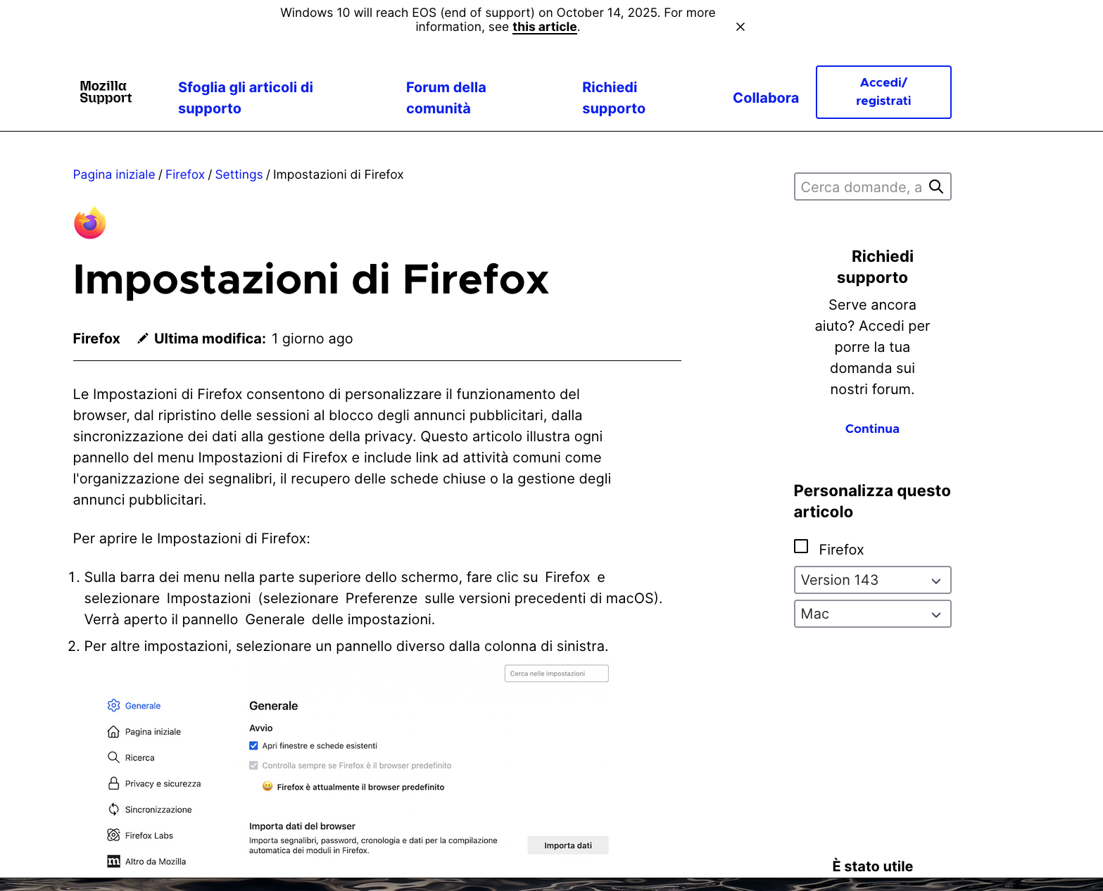 Firefox 143.0 4 -l'aggiornamento va in tilt con os catalina 1015.7