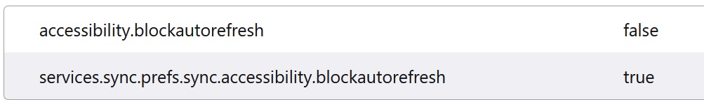 (2) In the search box in the page, type or paste accessibility.blockautorefresh and pause while the list is filtered