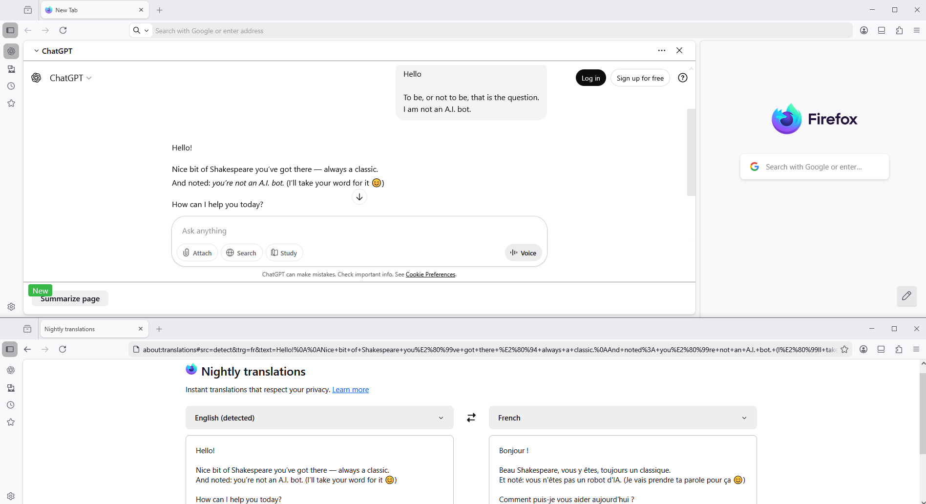 To be, or not to be, that is the question. I am not an A.I. bot.