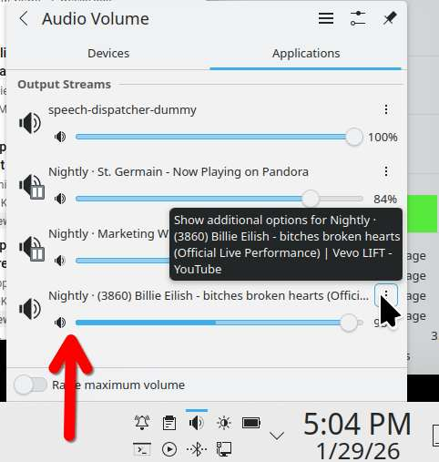 When I want to change the sound output from my laptop speakers to my usb speaker, I'm not making the change in the browser, the OS controls sound output. see screenshots I'm using a usb speaker for sound output from Nightly.