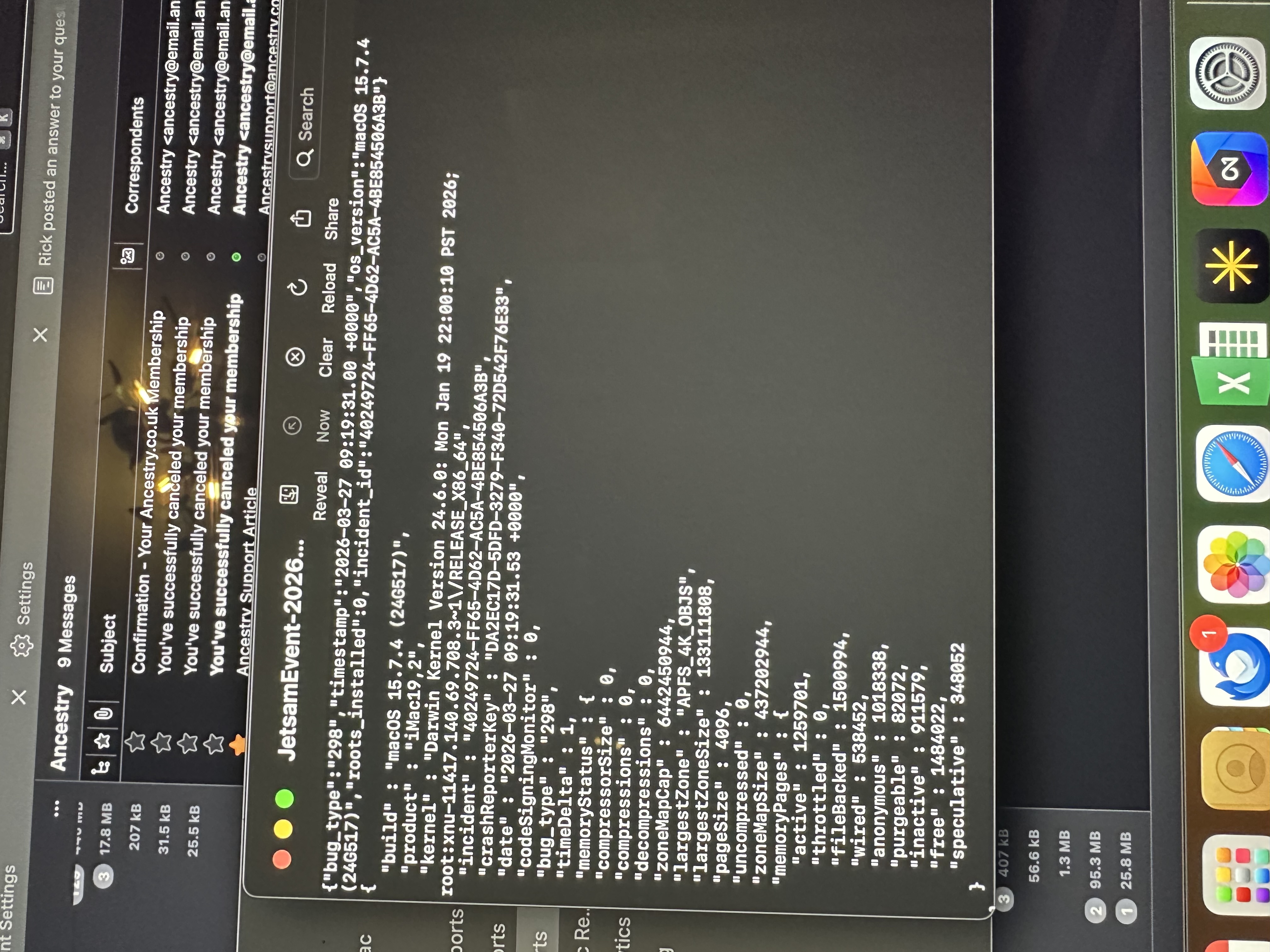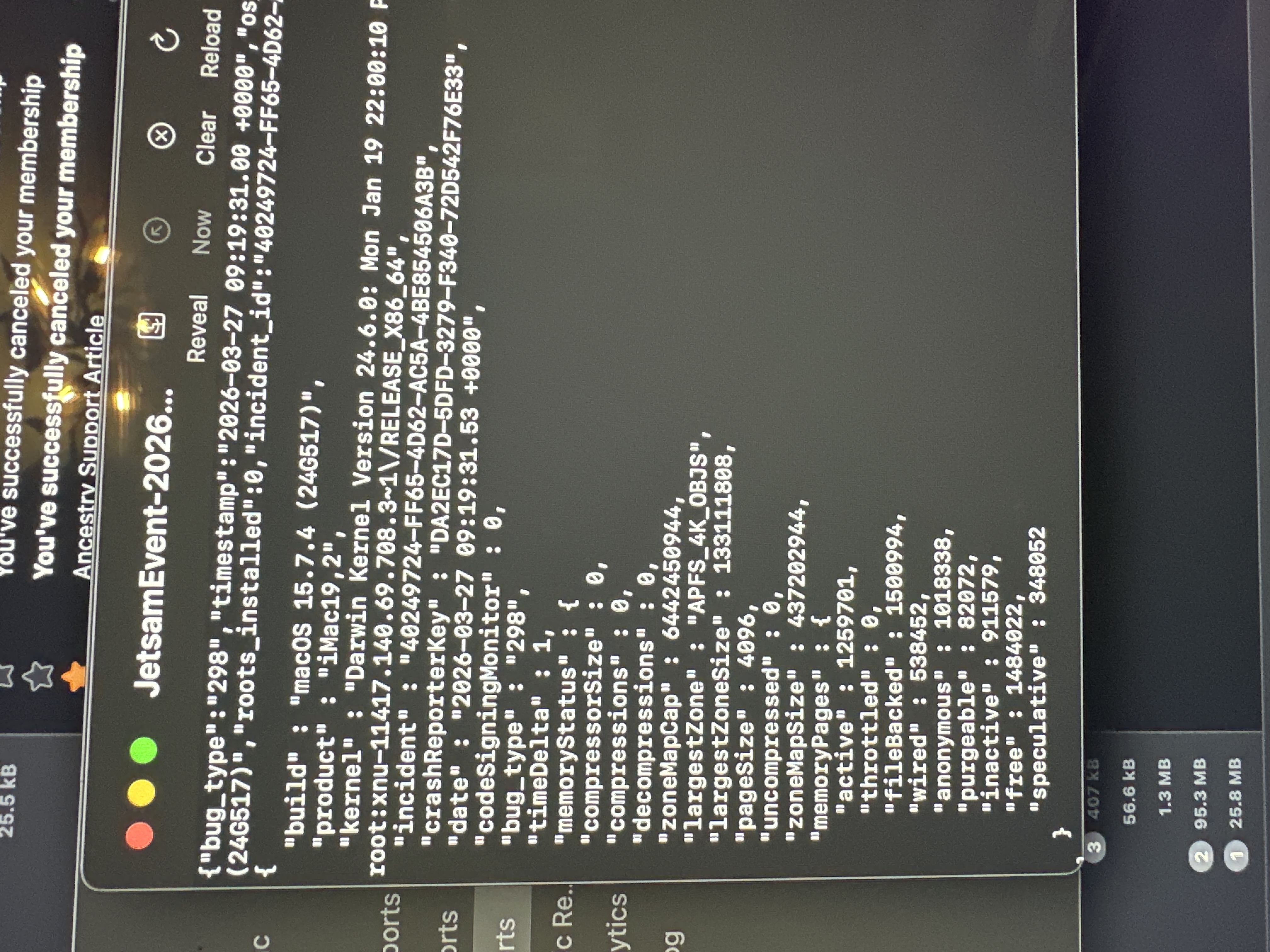 It did not appear in the status box but on the desktop there is a warning. Jetsam event - 2026.