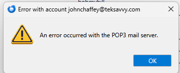 TBird will not open. Msg: an error occurred with the pop3 mail server. No other info given John