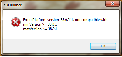 The error message is: Error: Platform versioin '38.0.5' is not compatible with minVersion >= 38.0.1 maxVersion <= 38.0.1
