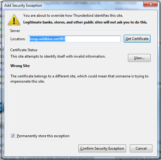 almost everyday Thunderbird asks if I want to add a security exception; I don't understand