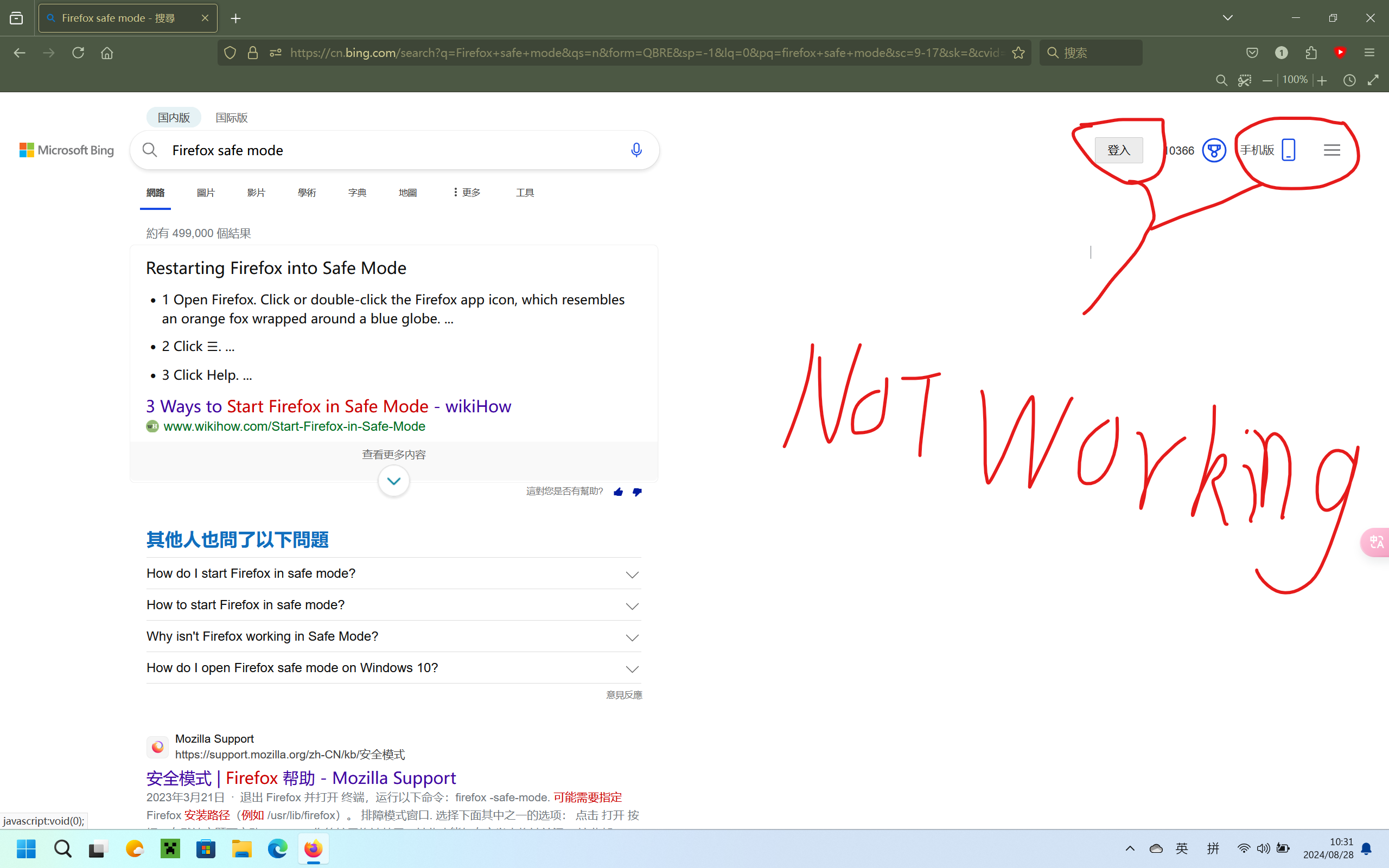 When I searching something with Bing, I Try to login,They only shows: javascript:void(0); And I try other browser.They works fine so probably the Firefox problem