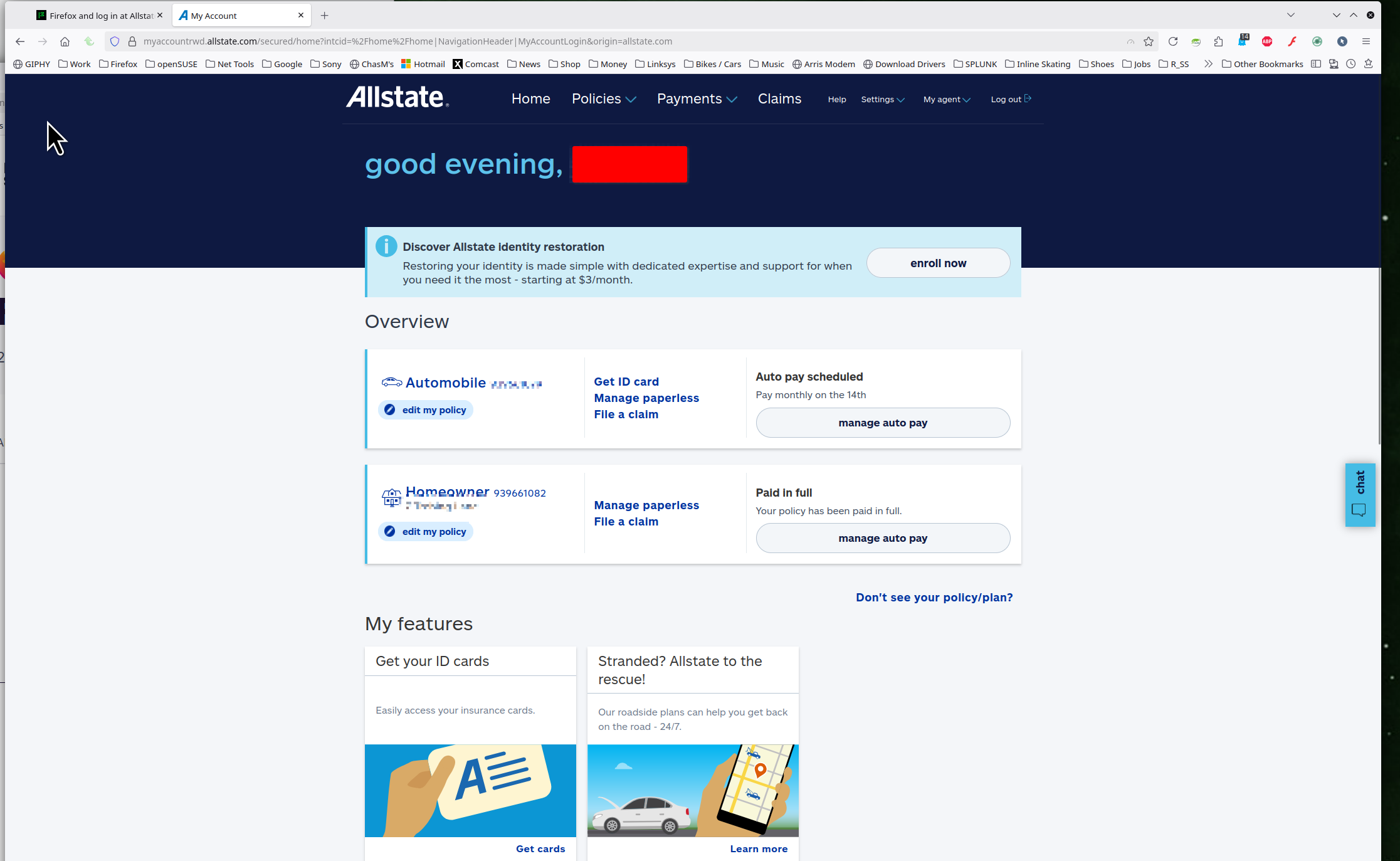 I'm also with Allstate and just checked my claim with no issues. see screenshot Do you have the same issue with Firefox in Troubleshoot Mode? https://support.mozilla.org/en-US/kb/diagnose-firefox-issues-using-troubleshoot-mode#w_how-to-start-firefox-in-4troubleshoot-modesf5safe-modesf