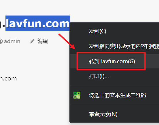 2、在网页中选择一个域名时,弹出或右键中可“转到该域名地址”。