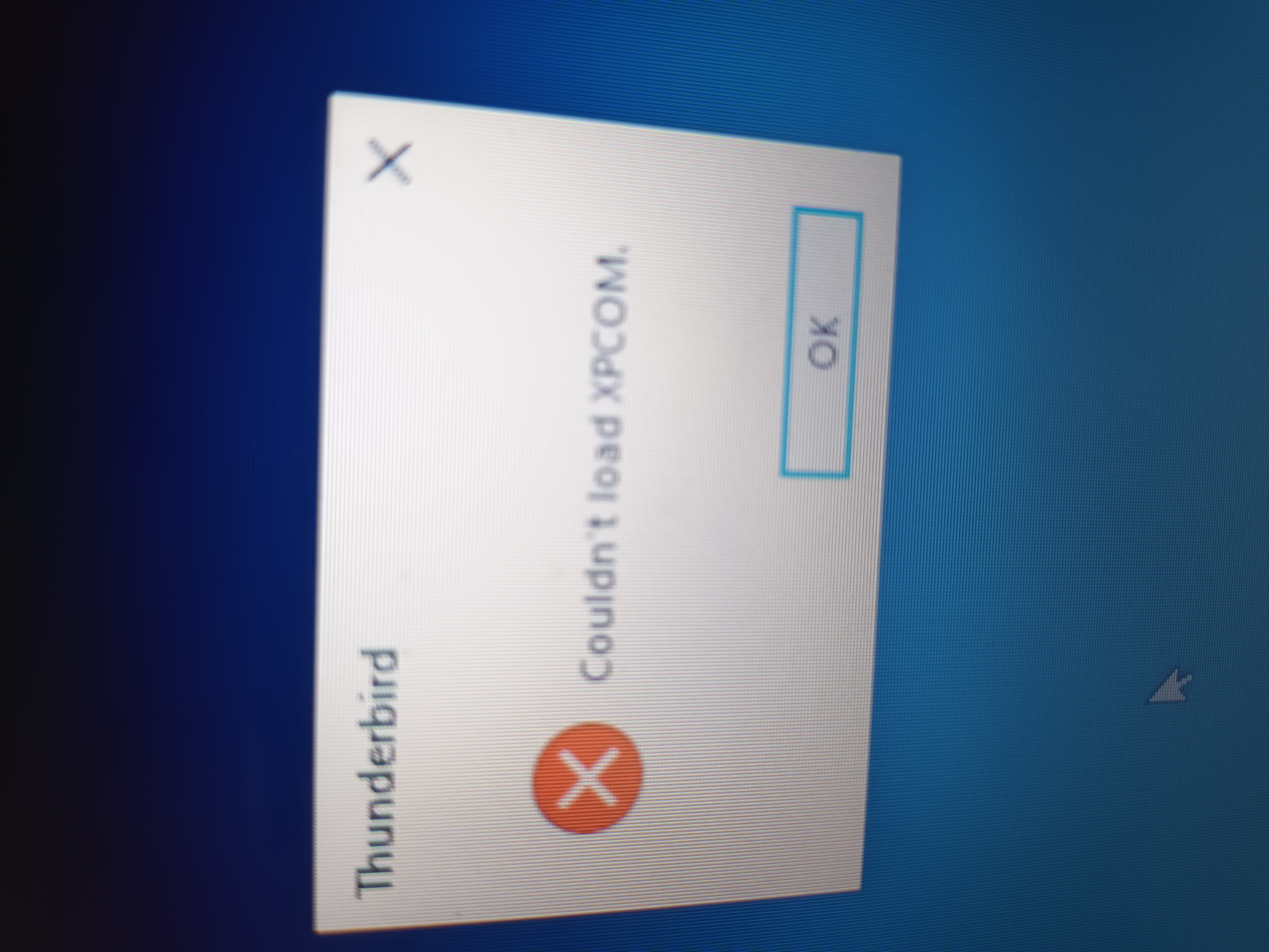 Buongiorno, ieri verso le 17.00, volevo leggere la posta ricevuta, sono andato sull' icona e il messaggio che mi è stato evidenziato è il seguente : COULDN'T LOAD XPCOM. Ho provato a cliccare sull'icona anche questa mattina ma non mi si apre ,come ieri. Potete aiutarmi per cortesia. Grazie. n.b. Non sono molto esperto in materia.
