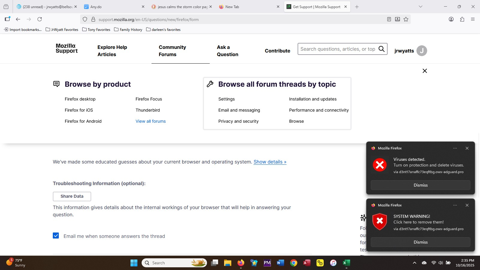 Running Windows 11. Receiving notifications from Firefox that indicate system warnings and viruses found. I have run several scans using Norton and there are no viruses. This notification is enticing me to click to remove the errors, which seems to clearly be a phishing scam, but I have never seen this as a notification from my browser as opposed to an email. When I try an option to "disable notifications", Norton blocks it due to it being identified as a dangerous "blacklist URL". I can't find a mozilla setting to block this.