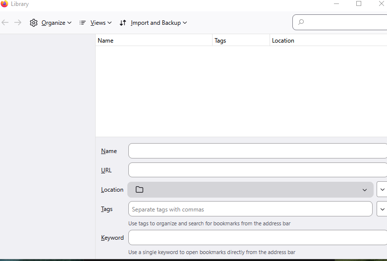 When bookmarks are missing, new bookmarks cannot be saved, and bookmark backups cannot be restored, one possible reason is that Firefox has lost access to the Places database (a pair of files that store URLs, visit history, bookmarks, and site icons). Here are some things to try in that situation: