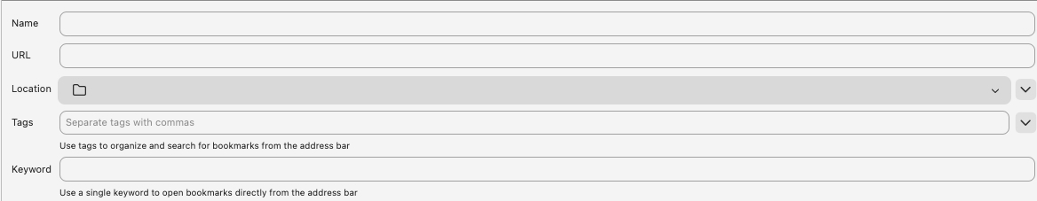 On clicking on the "Manage bookmarks" link, I'm taken to a page with several fields, including "Location". I can not get any of the selections to work.