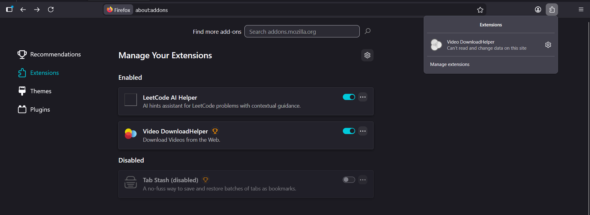 extension "Code with Ai" is enabled, but it is not visible in the toolbar extension popup menu